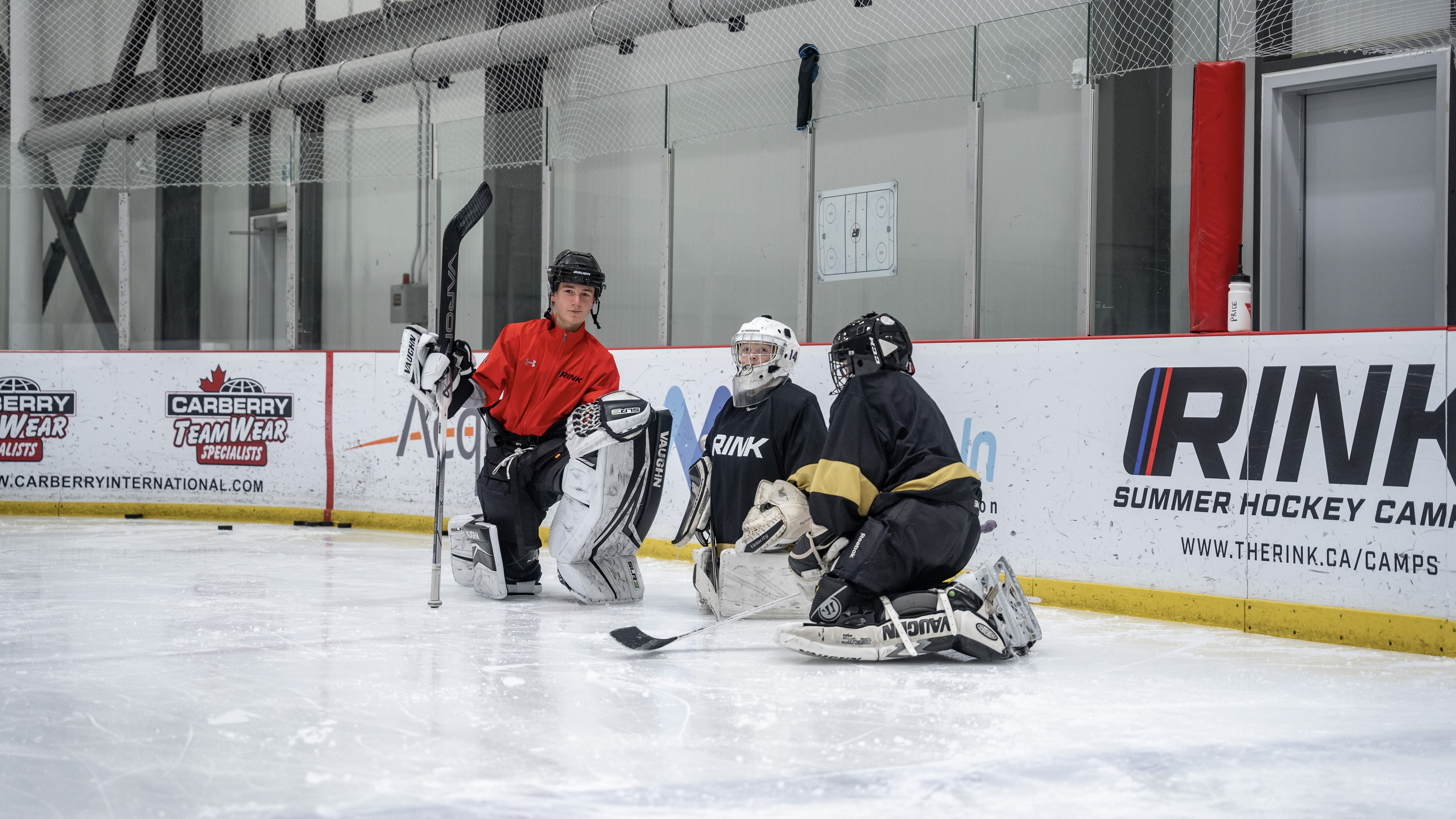 Each day, goalies begin with a 2:1 on-ice session with a RINK GDEV professional, allowing for detailed instruction, feedback, and repetition. The second on-ice session places goalies into live game environments with players, helping them apply technical improvements within real gameplay situations.